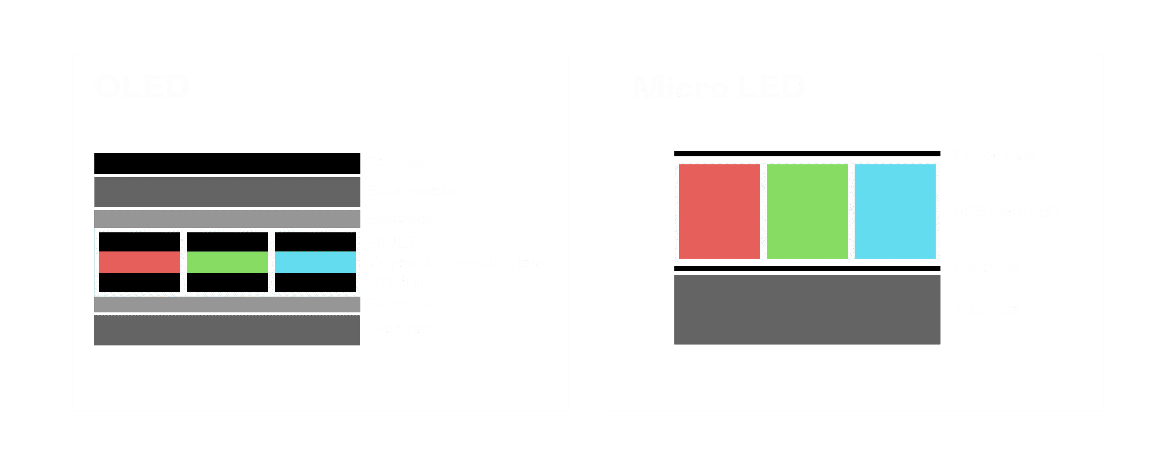 以 LED 做为显示画素,,,可让 LED 的发光效率发挥到极致,,,,从而让显示器具备优异的亮度表现,,,,不论是在户外或室内,,,均具备出众的显示效果。。。同时,,,与使用有机材料的 OLED 相比,,LED 具备更稳定、、寿命更长的特性,,不仅不会有画面烙印问题,,,,而且更不容易出现故障、、、坏点。。